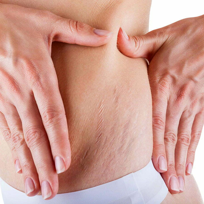 Las estrías se presentan como cicatrices internas de color rosado o nacaradas que se forman como consecuencia de tensiones de tracción que producen rupturas de las fibras de colágeno y elastina en la piel.