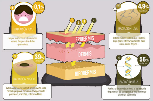 Los filtros utilizados en los protectores solares son efectivos para disminuir los efectos de las radiaciones ultravioleta A y B, pero no protegen contra los infrarrojos.